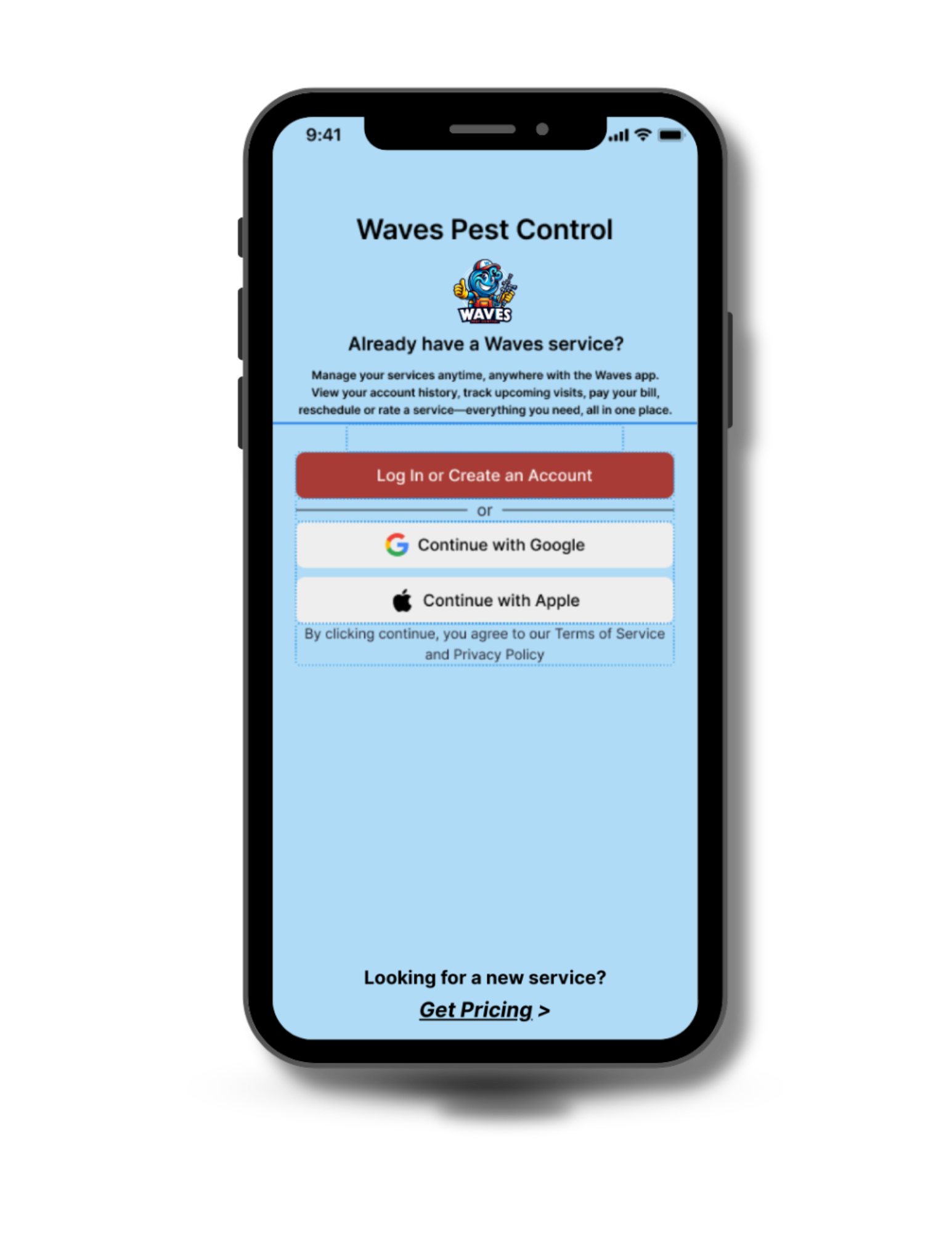 Need us fast? We’ve got you. Same-day and next-day visits are part of the deal, and our support doesn’t shut off after 5 p.m. You can message us anytime (we see those late-night “what is THIS thing??” pics) or use the Waves app to check your service history, book your next visit, or ask questions without calling five times.
